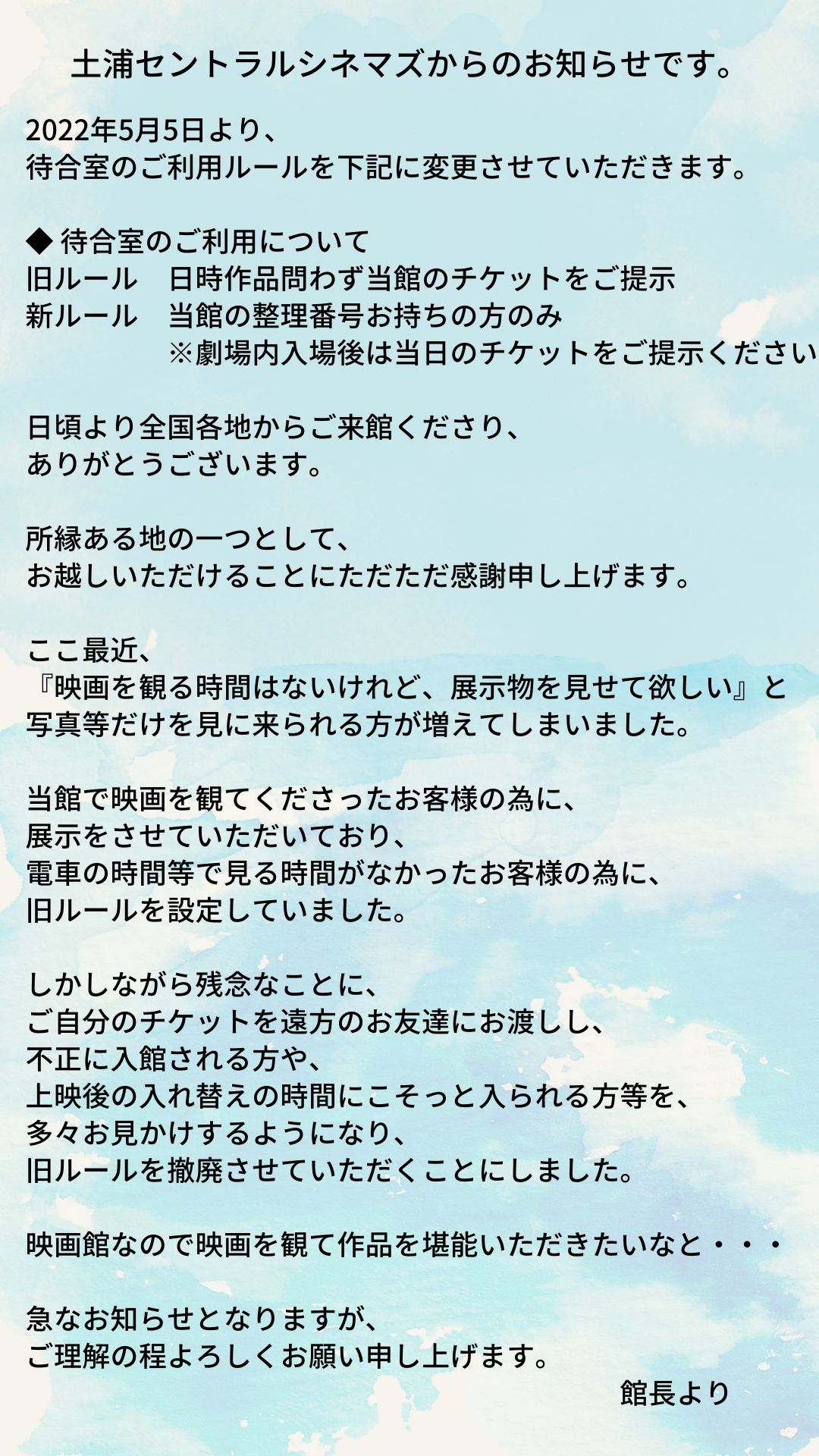 『チケット販売時にお渡しする整理番号をお持ちの方のみ(上映お待ちの方のみ)』
