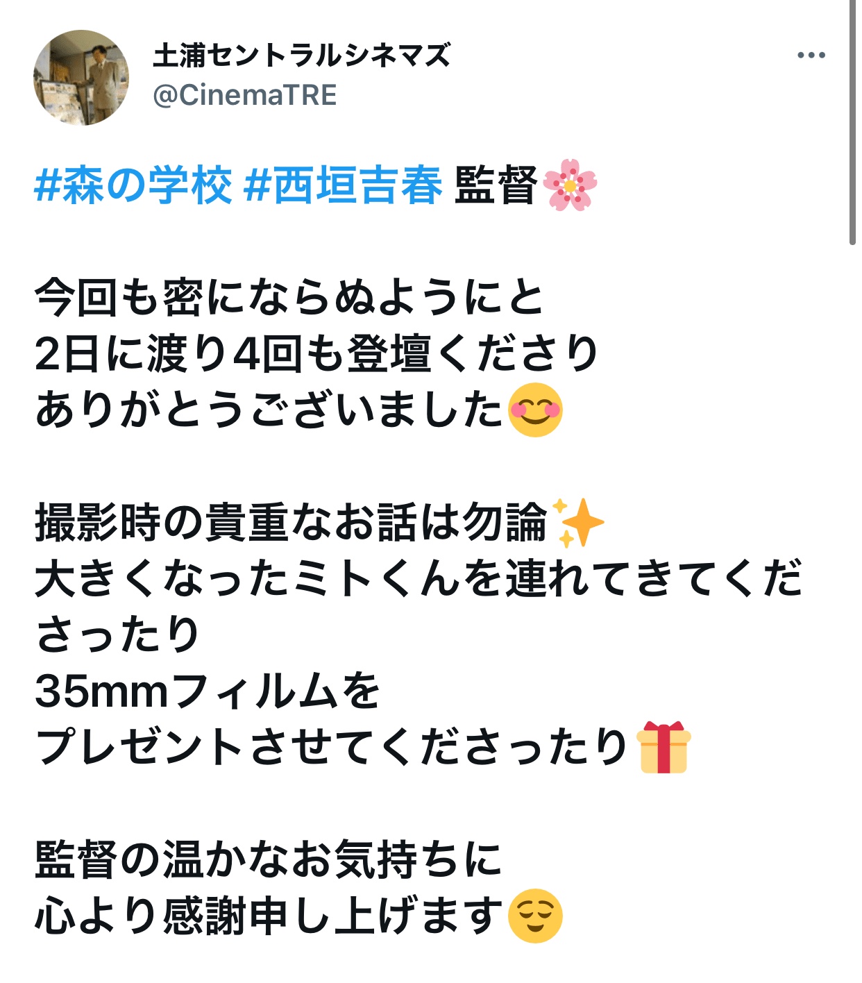 ※舞台挨拶時の小谷力さん(ミトくん)のお写真や個人で一緒に撮られたもののSNS等への投稿はご遠慮ください。孫もNGとさせていただきますが、館長の写真はOKです🙆♂️